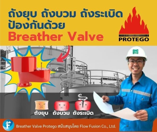 Breather valve หรือ Pressure and vacuum relief valve (PVRV.) คืออะไร?Breather valve ติดตั้งตรงไหนได้บ้าง?Breather valve แบ่งออกเป็นกี่ประเภท?เทคโนโลยีของ Breather valve?Breather valve หรือ Pressure and vacuum relief valve (PVRV.) คืออะไร? คือ วาล์วที่ทำหน้าที่ควบคุมความดันของถัง โดยระบายแรงดันออกเมื่อความดันในถังเกินกว่าระดับปกติ(overpressure) และดูดอากาศจากภายนอกเข้าถังเมื่อเกิดสุญญากาศ(vacuum) Breather valve หรือ Pressure and vacuum relief valve (PVRV.) คืออะไร?Breather valve ติดตั้งตรงไหนได้บ้าง?Breather valve แบ่งออกเป็นกี่ประเภท?เทคโนโลยีของ Breather valve?Breather valve ติดตั้งตรงไหนได้บ้าง? End of line : ติดตั้งบนหัวถัง In-line : ติดตั้งในท่อ Breather valve…